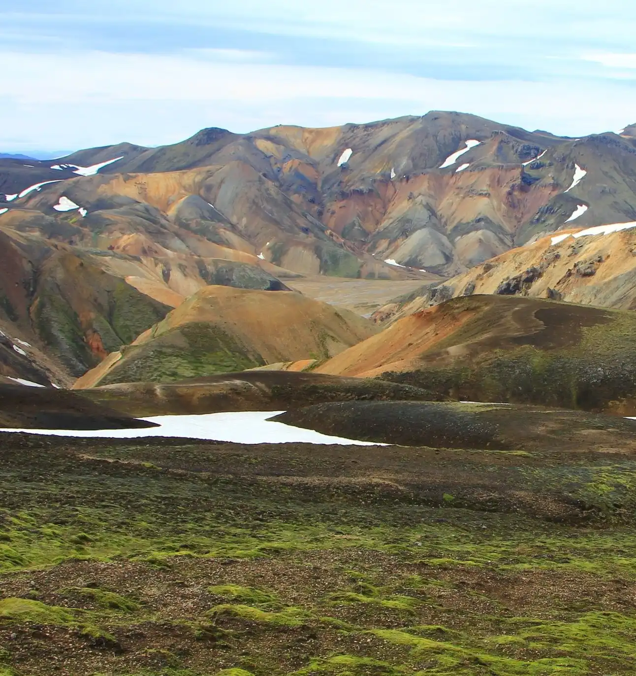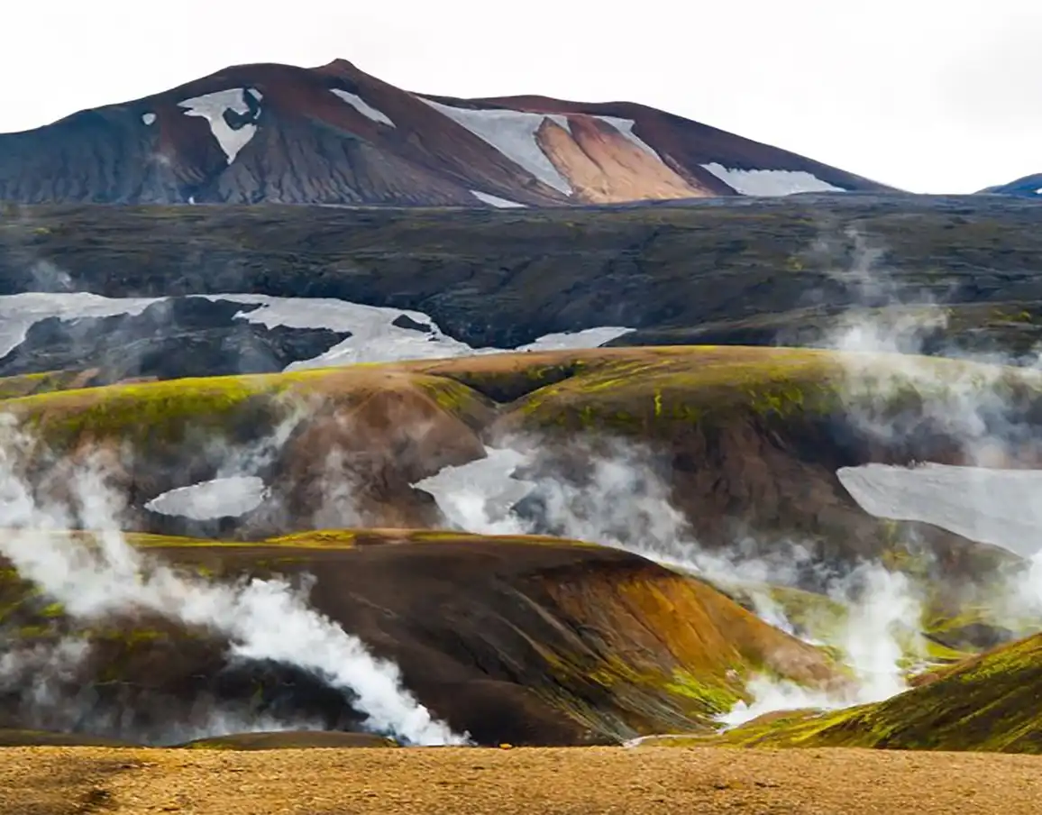 Mūsų takas ves per islandiško peizažo ikona tapusius „Spalvotuosius Kalnus“ bei senus lavos laukus. Kraštovaizdį suformavo jį tūkstančius metų supę aktyvūs vulkanai – iš čia ir senos lavos laukas, kurį kirsime šiandien; ir įvairias spalvas kalnam suteikiantys mineralai. Vieta geotermiškai aktyvi, todėl daugely vietų matysime rūkstančią žemę, o sieros kvapas neleis užsimiršti, kad esam Islandijoj!