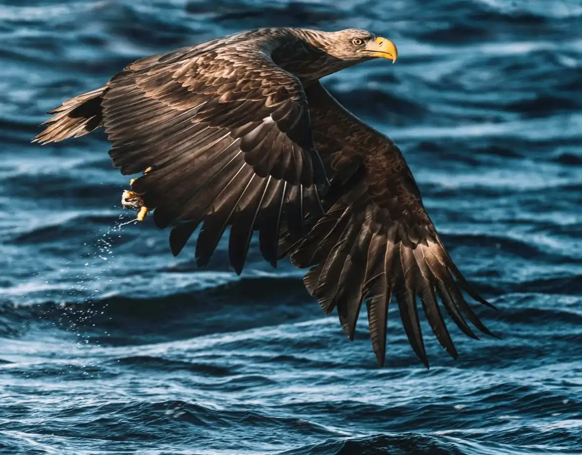 Jūrinių erelių (Haliaeetus albicilla). Nuostabi kelionė greitaeigiu kateriu iš arti stebėti jūrinių erelių. Ereliai aktyviai medžioja jiems patiekiamas žuvis. Vaizdas nepakartojamas. Neįtikėtinai gražūs ir didingi paukščiai. Išskėstų sparnų ilgis apie 2,5 metro. Plaukiant kateriu atsivers nuostabūs fiordų vaizdai, kuriuos galėsite pamatyti tik iš vandens, pati kelionė kateriu palieka ne mažiau įspūdžių nei Norvegijos Lofotenų fauna ir flora.